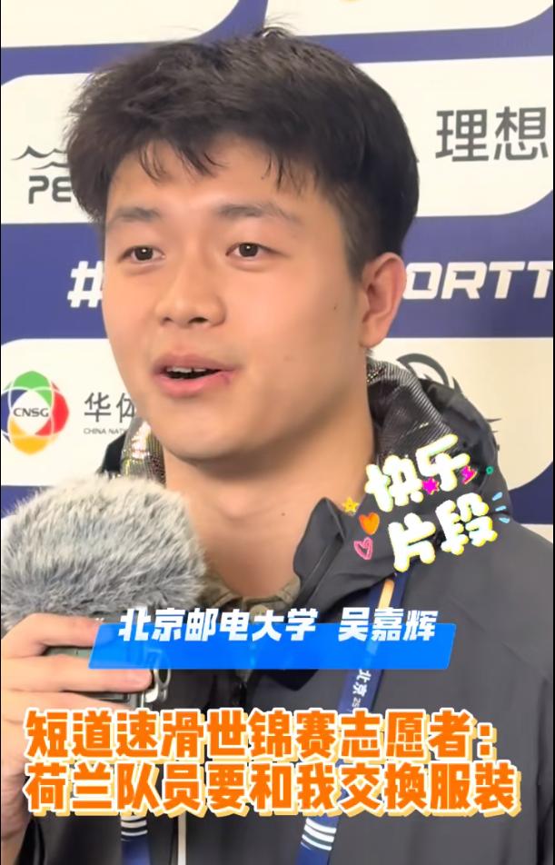 賽事結(jié)束后,荷蘭運(yùn)動(dòng)員與我校志愿學(xué)生吳嘉輝如約互贈(zèng)了有紀(jì)念意義的服裝(荷蘭國(guó)家隊(duì)?wèi)?zhàn)袍與北郵志愿者外套),成就了一段跨國(guó)體育友誼。自冰雪賽場(chǎng)走向世界舞臺(tái),北郵名片將不斷閃耀。
